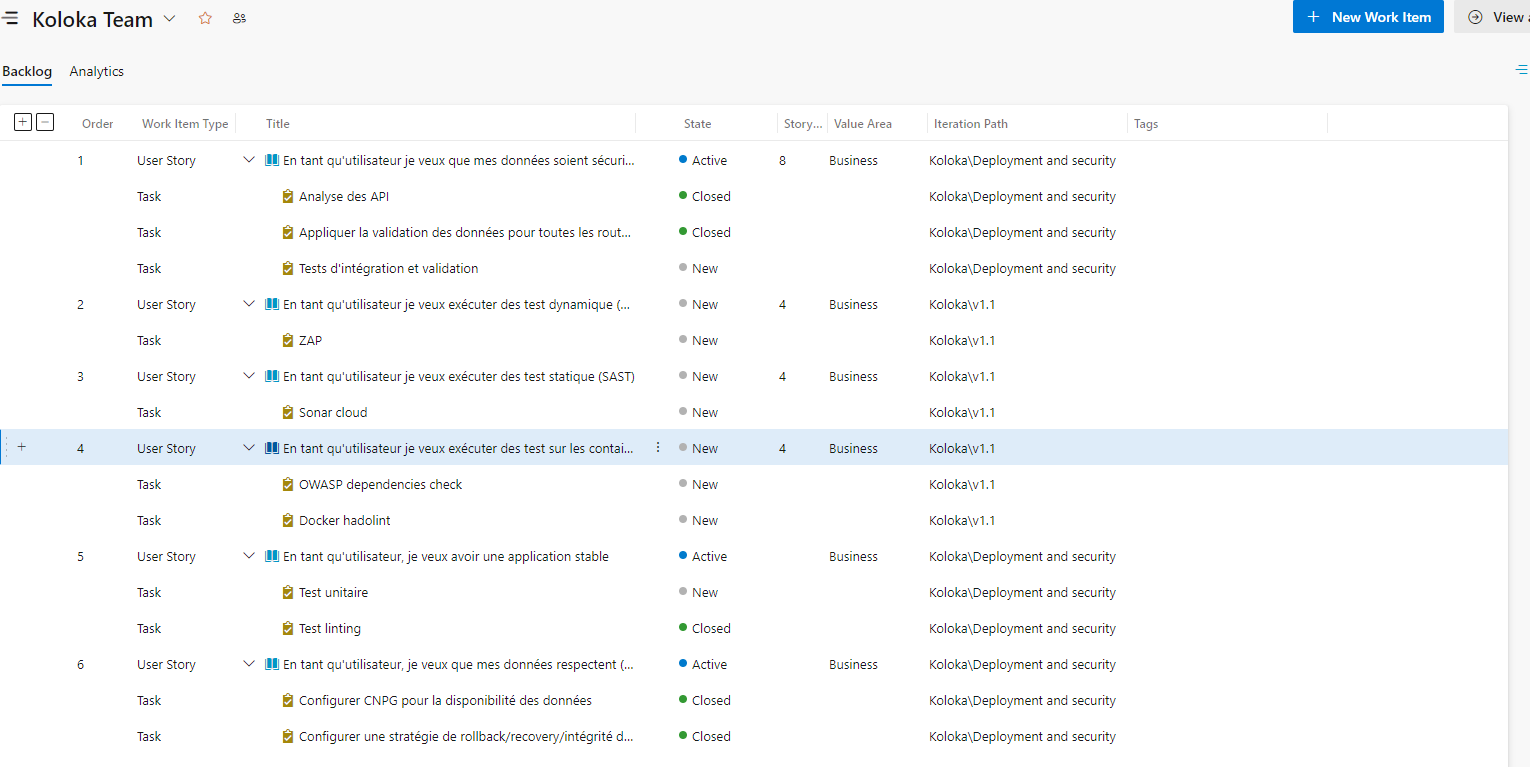 Dans le cadre de la gestion de projet selon la méthode Agile, j'ai pris part à des sprints selon le framework Scrum. Cela m'a permis d'acquérir une connaissance pratique d'Azure DevOps, en explorant ses fonctionnalités pour la planification et le suivi de projet. J'ai approfondi mes compétences en gérant l'interface utilisateur de la page d'accueil de notre projet, où j'ai intégré des images et textes tout en résolvant des problèmes techniques liés au design responsive.