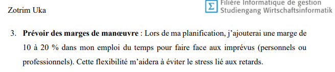 - AR 3 : Dans cet article, l’analyse des obstacles rencontrés – notamment le stress initial et un imprévu familial – m’a permis de réfléchir à la gestion des risques émotionnels et organisationnels dans des projets à venir. Ces réflexions théoriques, bien que non appliquées de manière pratique dans cet article, me fourniront des lignes directrices pour mieux gérer les risques dans de futurs défis techniques et professionnels, en planifiant et en priorisant les tâches de manière plus stratégique.