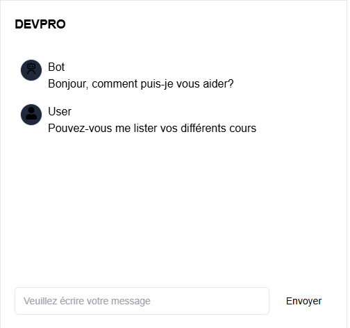 Extrait du chatbot DevPro, interface UI fait par Rafael Cardoso