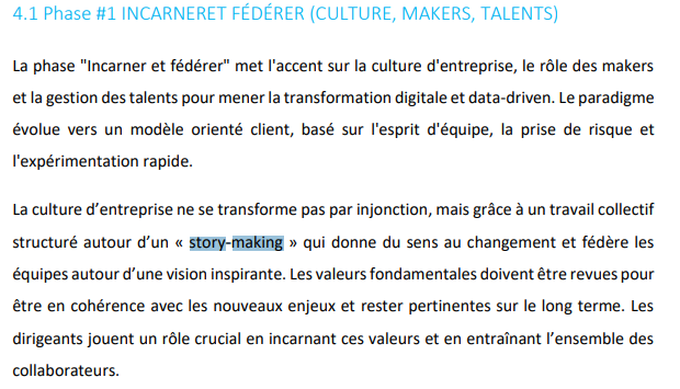 - LI 3 : Le livre insiste sur l’importance d’une culture explicite et d’un "story-making" pour fédérer les équipes autour d’une vision data-driven. Cette stratégie narrative permet de renforcer la cohérence des messages et d'assurer une meilleure communication interne et externe.