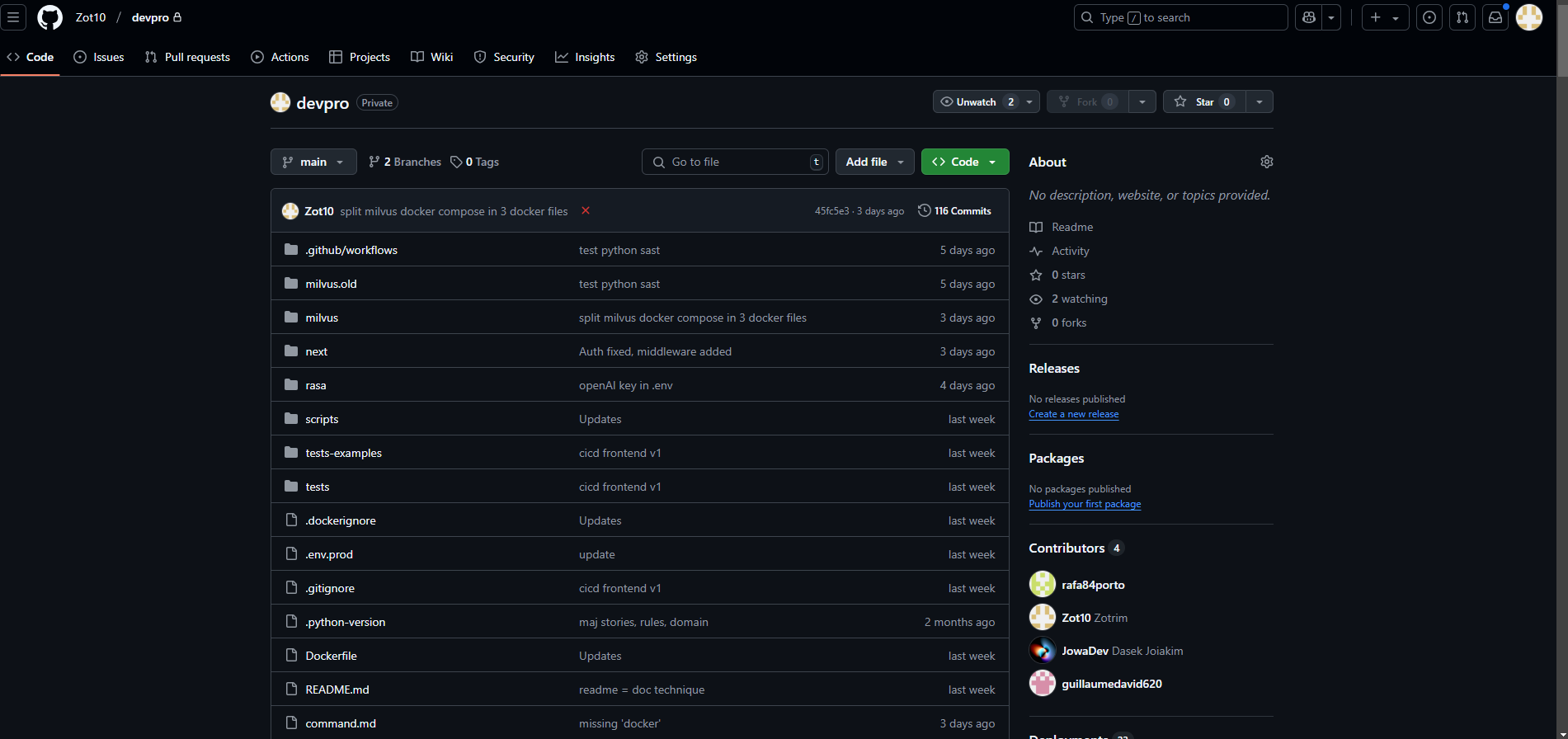 - DevPro : J’ai géré plusieurs aspects du projet (API, NLU, bases de données vectorielles), tout en collaborant avec l’équipe sur des objectifs hebdomadaires.