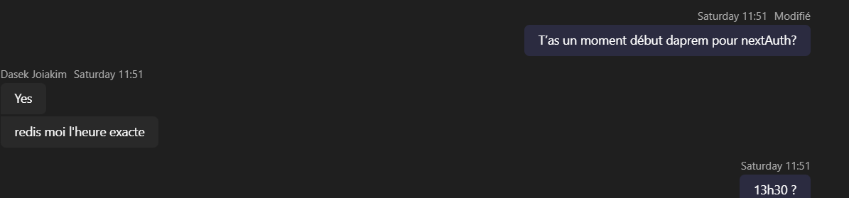 extrait de teams demandant à un camarade de m'expliquer